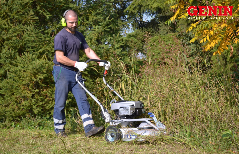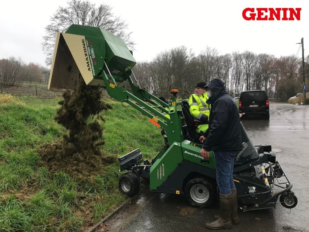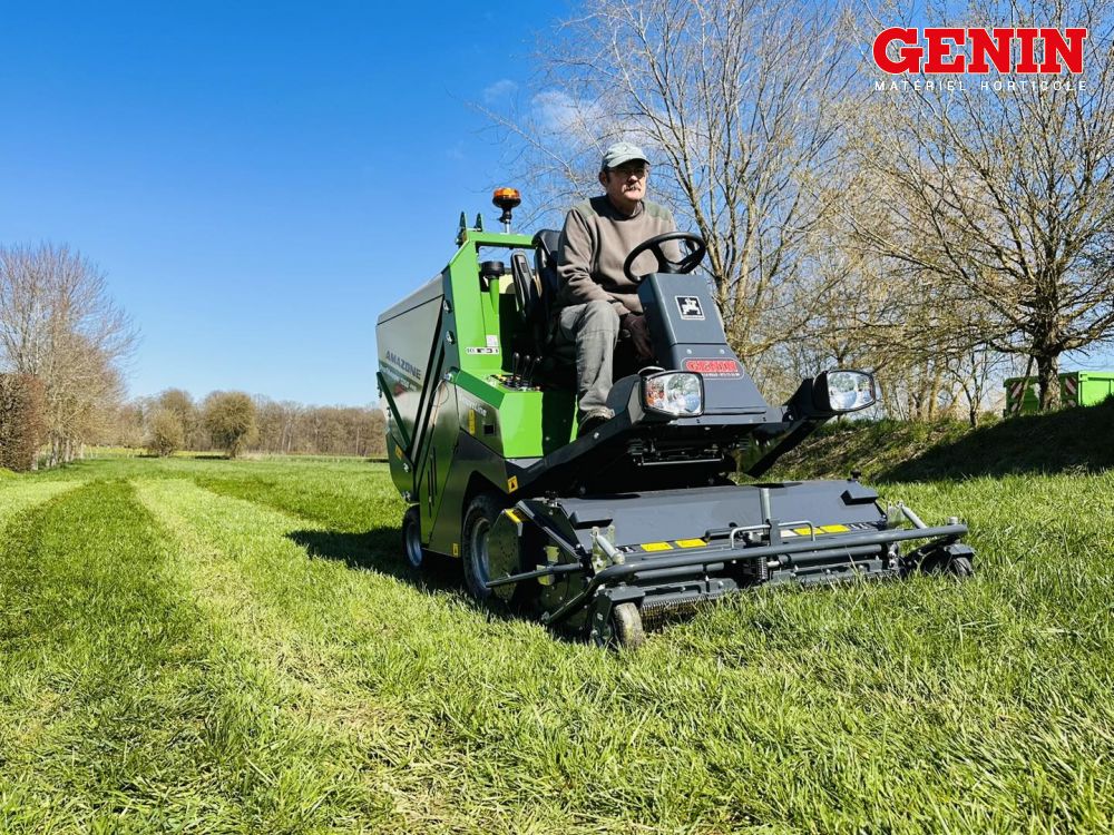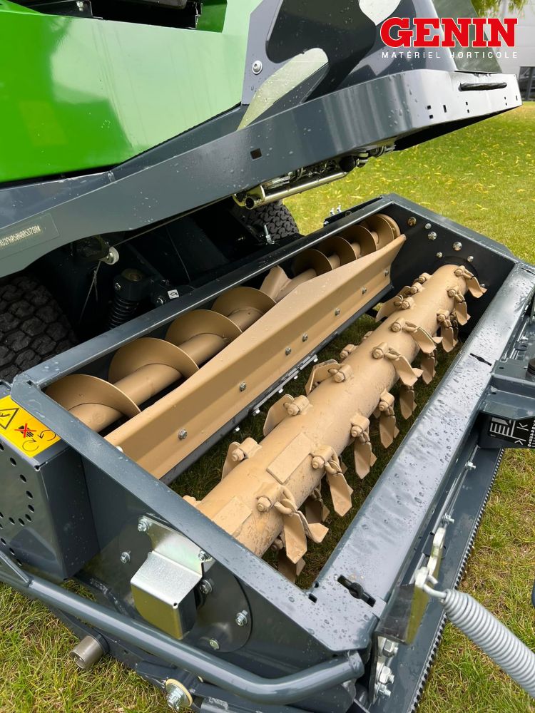 Grin est le seul système de tonte breveté qui permet de centrifuger et de pulvériser l'herbe.