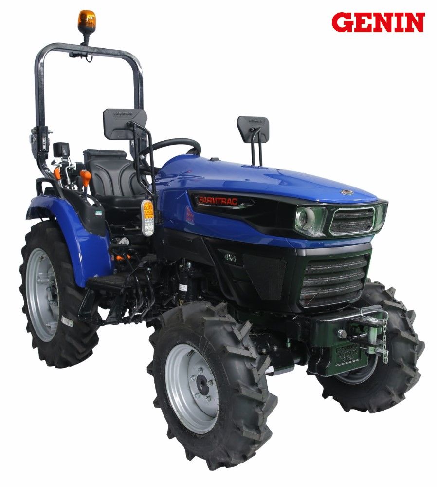 Les tracteurs compacts Farmtrac sont construits pour être aussi bien fiable qu’abordable. Le tracteur est assemblé avec un moteur Mitsubishi de 26,5 cv et 28,5 cv. Choix entre 9 vitesses avant et 3 arrières à prise constante, ou hydrostatique à 3 groupes (à partir de novembre 2018). Relevage hydraulique avec une capacité de 750 kg. Pompe hydraulique de 21 l/m : approprié pour un chargeur frontal en option