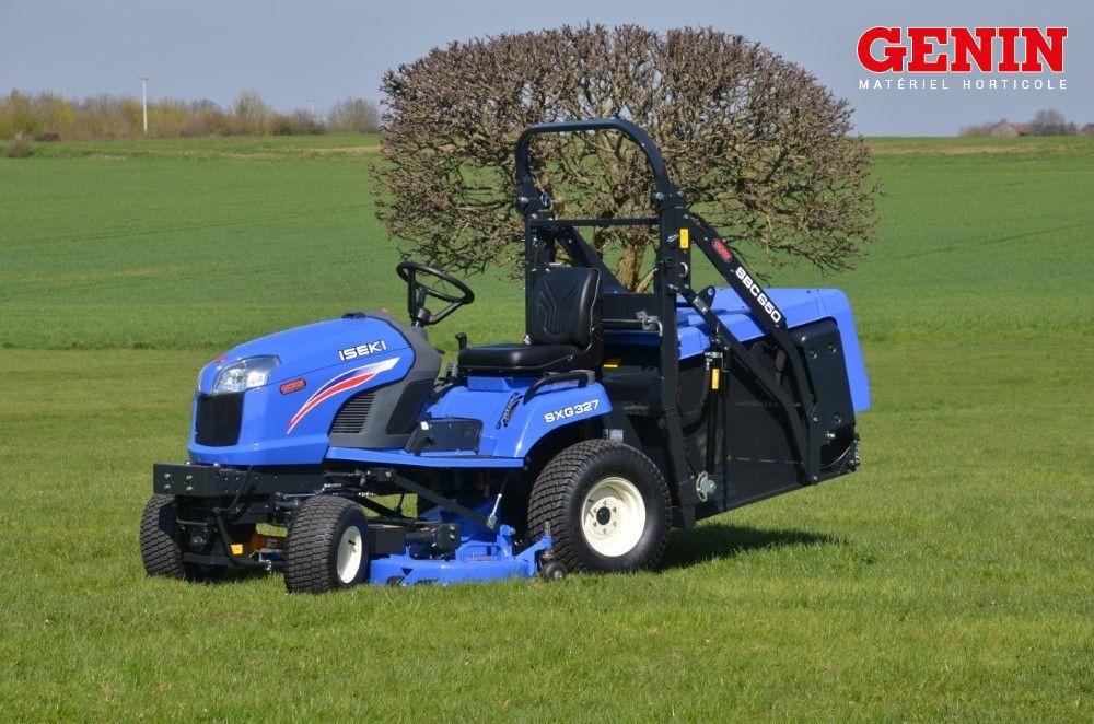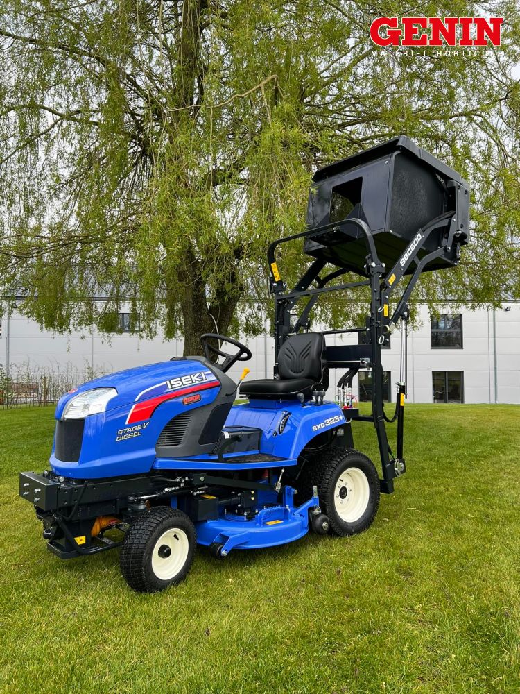 Iseki complète sa gamme de tondeuses autoportée en nous proposant cette année l' Iseki SFH 235. La petite sœur de l' Iseki SFH 450, équipée d'un moteur Iseki diesel 3 cylindres de 35 cv et d'une transmission 4X4, elle est équipée d'un bac de 900 litres benable en hauteur .