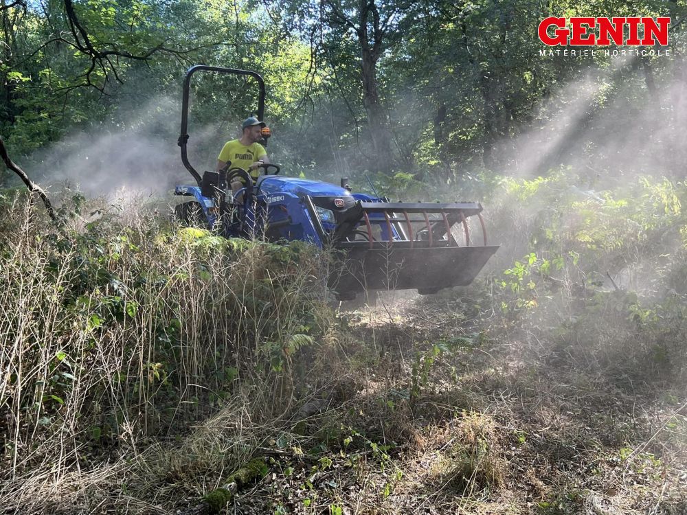 Celui-ci accouplé à une broyeur à marteaux Agrimaster KL 1300 idéal pour l’entretien de terrains vierge et sous bois